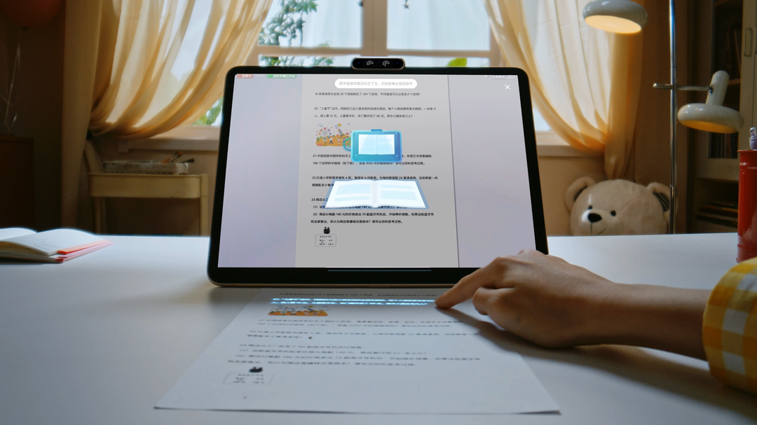 T系列学习机上的创新设计使小思由屏内非常驻变为硬件上常驻,更好地承接全局copilot角色。学习机配备了性能更优的摄像头和中间的小屏幕,作为小思的载体,在任何场景下都可以便捷唤醒。