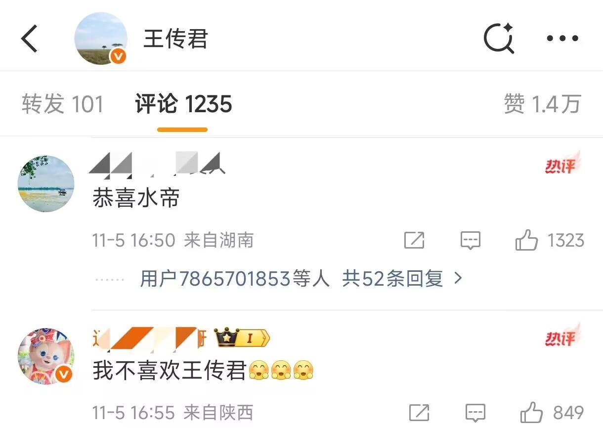 更搞笑的是,有人说王传君之的影帝是靠暗箱操作拿下来的,是资本要捧他。王传君的评论区也涌进了一堆白百何的粉丝,大骂他是水帝。