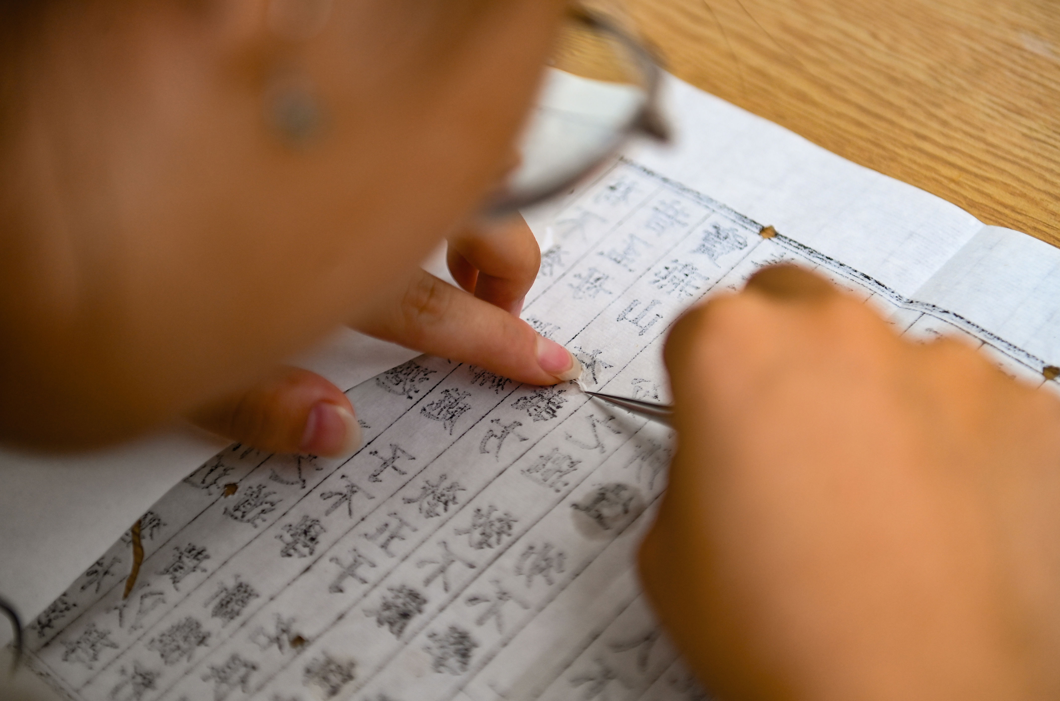▲2025年11月6日,重庆大学沙坪坝校区,修复师正在指导同学们学习古籍保护的各种传统技艺。记者 郑宇 摄