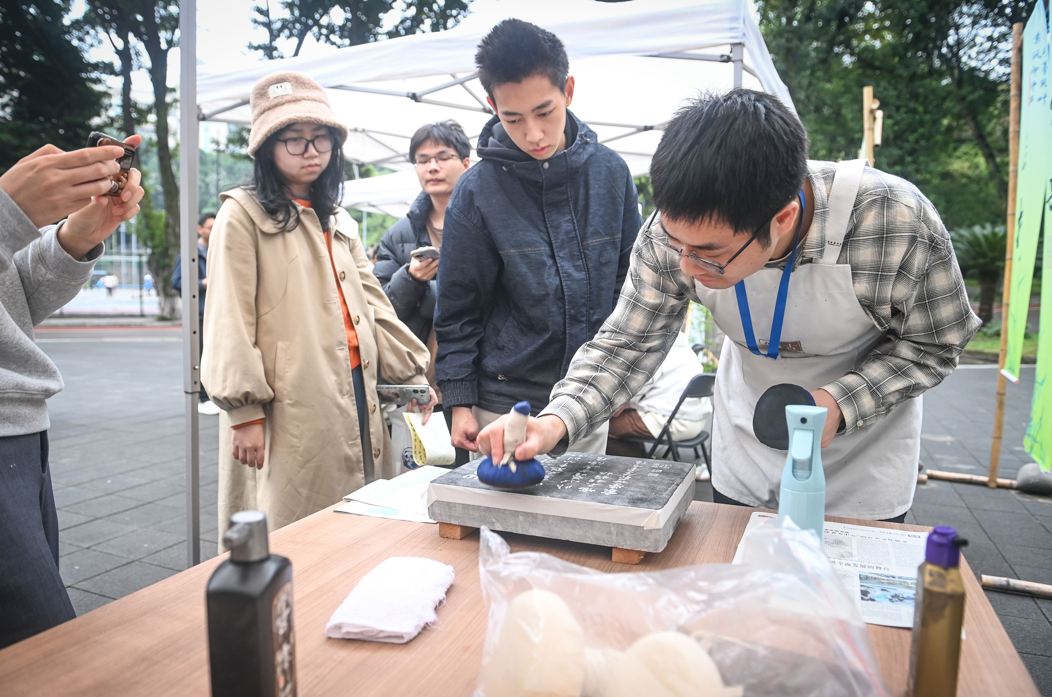 11月6日,“古籍保护课程进校园·重庆站”启动仪式暨首场活动在重庆大学举行。在修复师的专业指导下,师生们现场体验了古籍修复技术从手写到传拓、再到印刷的发展历程,深入了解如何保护、维护古籍以及在这些传统技艺中蕴含的科技基因。
