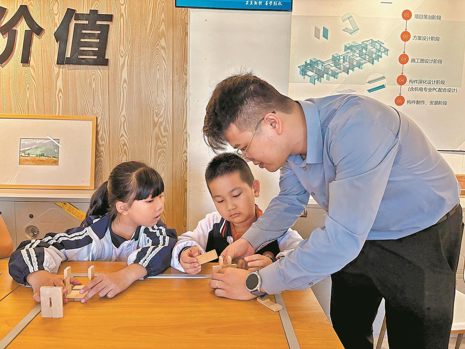 黄佳鸿指导小记者们拼装鲁班锁