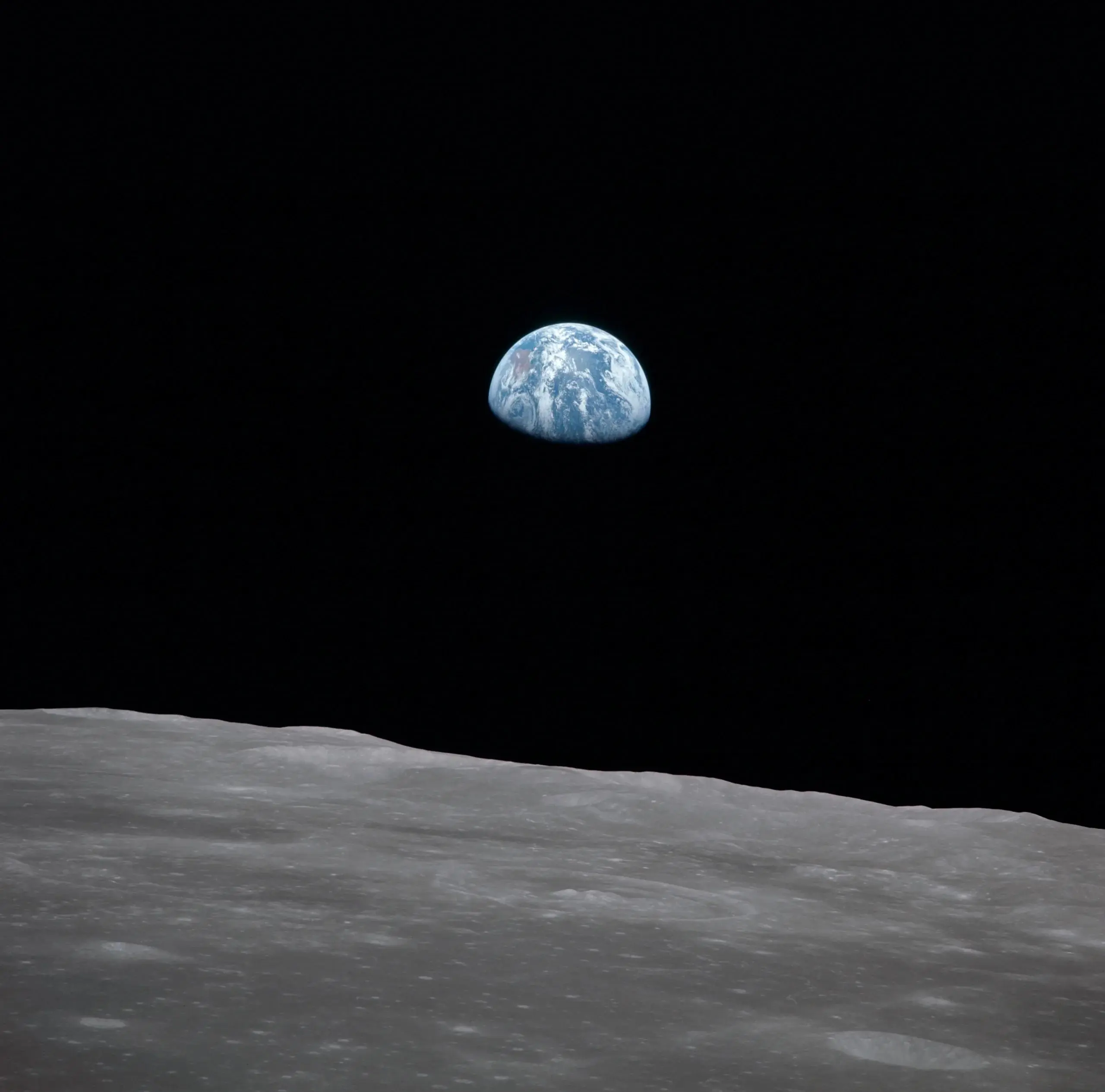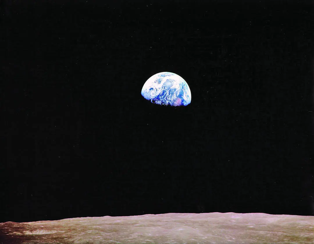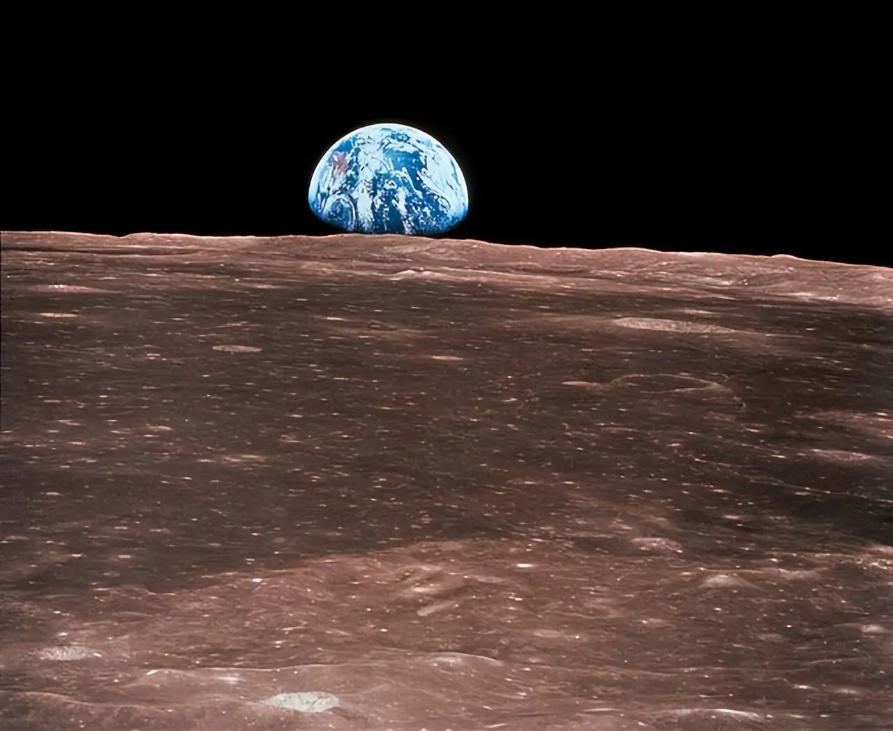 阿波罗8号的宇航员威廉·安德斯拍摄了那张标志性的“地升”照片,在这张真实的照片中,整颗蔚蓝色的、如大理石花纹般精致的地球,正从死寂的、灰色的月球地平线上冉冉升起,悬浮在黑暗无边的太空里。
