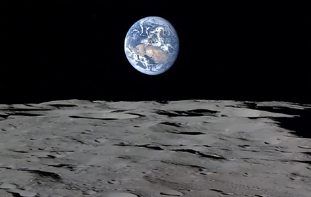 由于月球被地球的引力“潮汐锁定”,它始终只有相同的一面朝向地球。这就是为什么你从地球上永远看不到月球的背面,但反过来,如果你站在月球的“正面”,地球并不会像月亮一样“东升西落”。相反,地球会几乎“固定”在月球天空中的某一个位置,像一幅永远悬挂在那里的、永恒的画作。