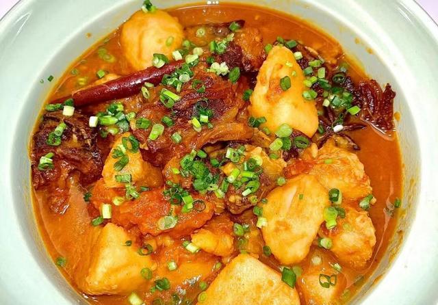 番茄芋头炖牛腩,软糯的芋头吸饱了汤汁,牛肉也炖得酥烂,入口即化。而且这个菜还特别适合冬天,热气腾腾的一锅,既暖胃又暖心。