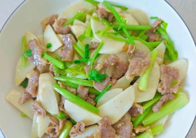 食材:芋头、牛肉、小香芹、淀粉、生抽