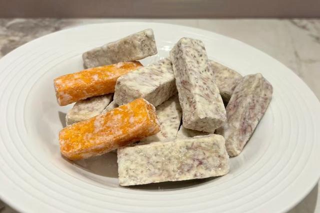 1、找一个合适的芋头,一定要糯种,不要那种吃起来硬梆梆的,切条状备用,随你怎么切,一般都是长条状大小一致