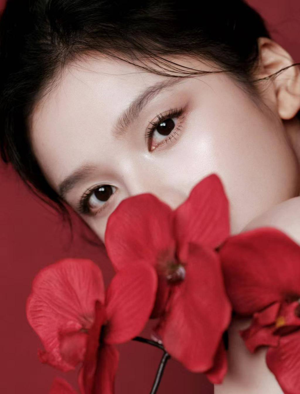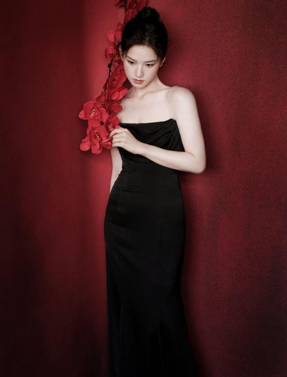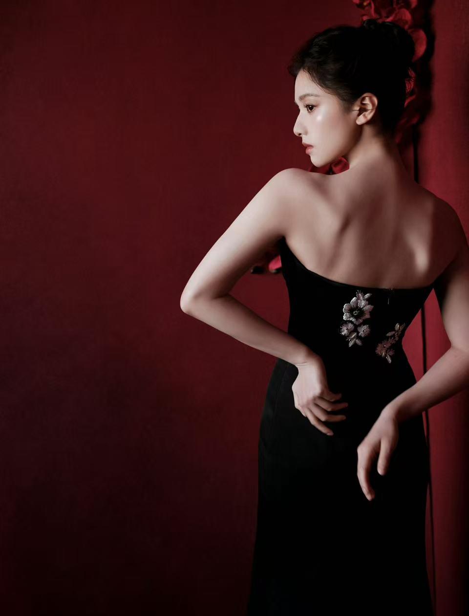 张婧仪黑裙配红花大气又灵动,五官精致笑容浅浅