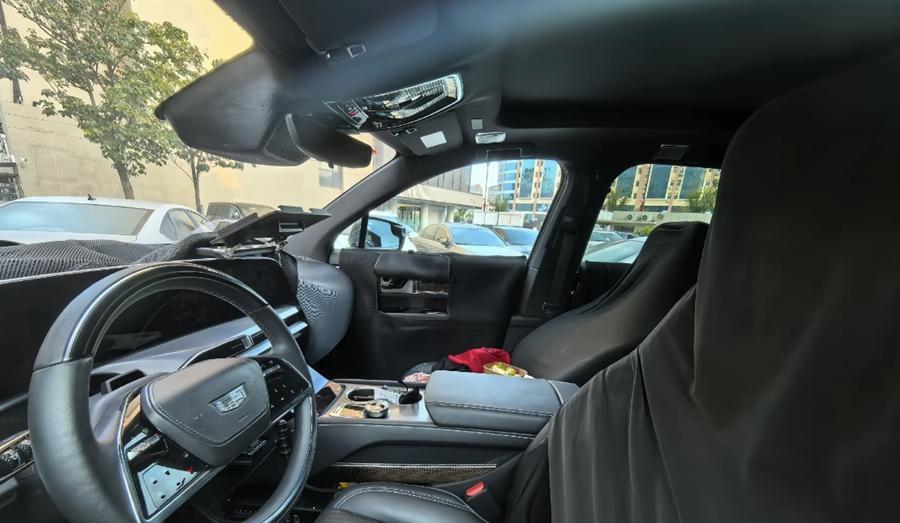 从实拍图中可以看出,国产后的凯迪拉克VISTIQ基本延续了海外版本的设计。它的前脸不仅配备了黑晶光栅样式的中网,还保留了品牌标志性的竖向头灯,结合贯穿式LED灯带,在保持了较高的科技氛围的同时,还显得十分霸气。当然啦,这也不负其纯电“小凯雷德”的名号。