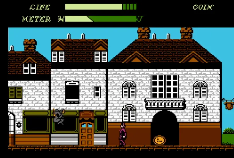 如果说《甜蜜之家》是物理层面的折磨,那《化身博士》就是心理层面的摧残。游戏改编自经典小说,主角会在“亨利”和“杰基尔”两种善恶形态间切换。当你操控亨利时,虽然手上持有拐杖武器,却无法对敌人造成任何伤害,满街乱跑的敌人,会把你打得满地找牙;而当精神条积累到一定程度,则会变成无敌的杰基尔,遇神杀神,不过杀着杀着,却又会被天空突如其来的闪电击毙……由于这个奇葩设计,不少玩家一辈子就卡在第一关了。