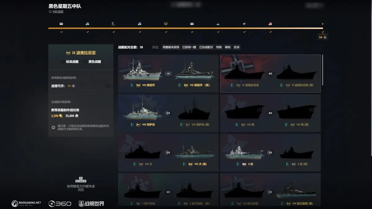 而且任务不限制当期活动战舰,活动前拥有的船也算,船齐霸业的老玩家直接狂喜!每拿一艘黑五船还能攒进度代币,推进度又能领补给箱、研发点和更多资源!