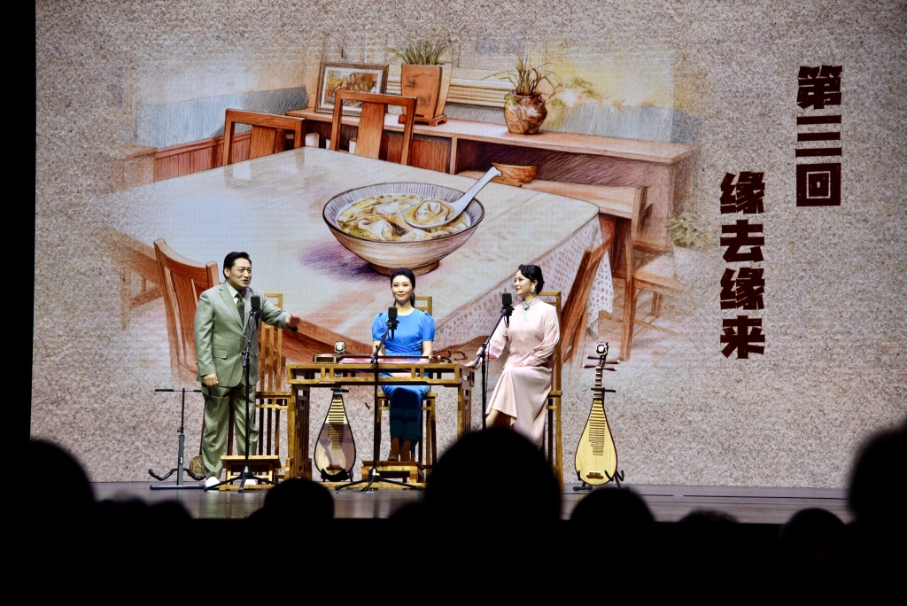 “馄饨碗里沉浮事,尽是人间悲喜诗”,舞台上三弦轻拨,吴侬软语演绎起菜肉馄饨的讲究和上海人的日常生活,也唱出了上海的市井风情和人情冷暖。这是一次电影和评弹的双向互动,也是一次海派文化的双重奏鸣。