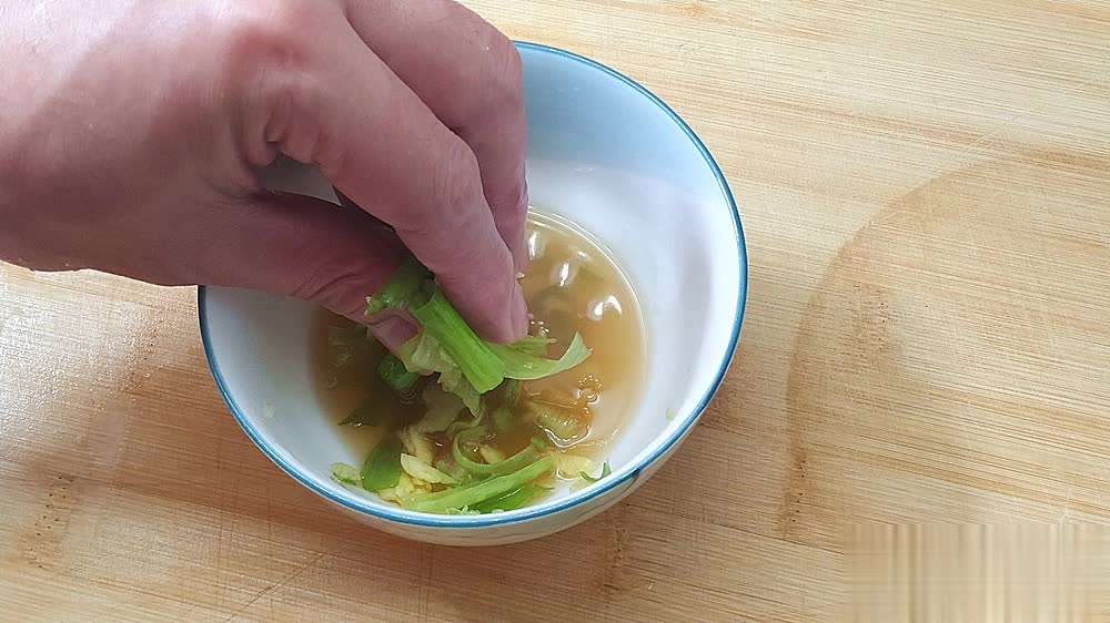 【步骤二】:把生姜和大葱切碎放料酒10克用手把不停地用劲抓揉生姜和大葱,把葱姜汁抓揉出来。