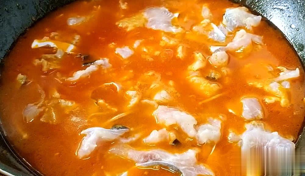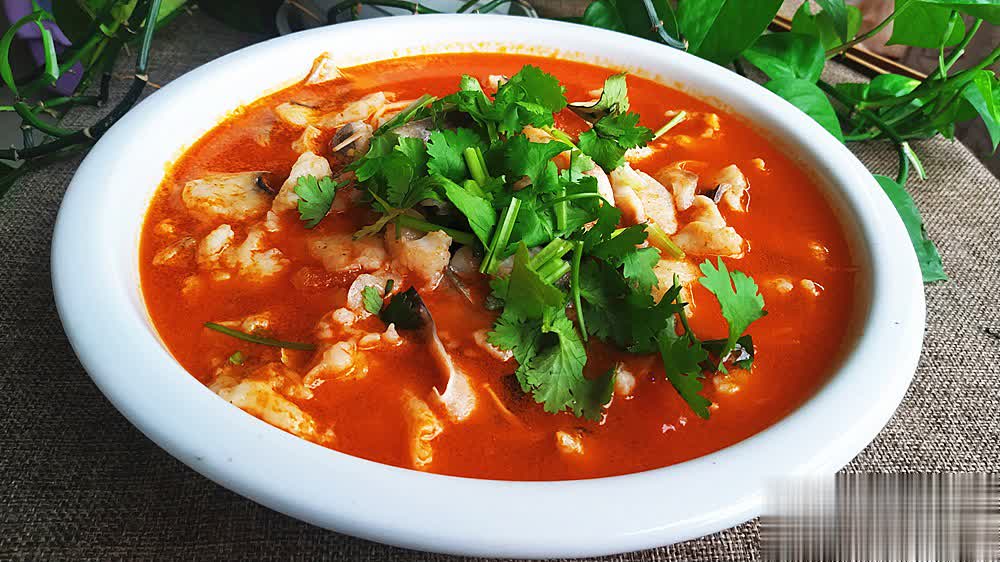 【步骤九】:开小火,把巴沙鱼片下入锅中后,开大火,用勺子轻轻的推动鱼片,让其均匀受热,烧开后,放入10克左右的白醋或者柠檬汁提鲜,搅拌一下就可以了,巴沙鱼很嫩,基本上一烫就熟了,所以不要煮太久,一般开锅就好,然后把它连汤一起倒入放金针菇的汤碗中,撒上香菜点缀一下,上桌开吃啦!