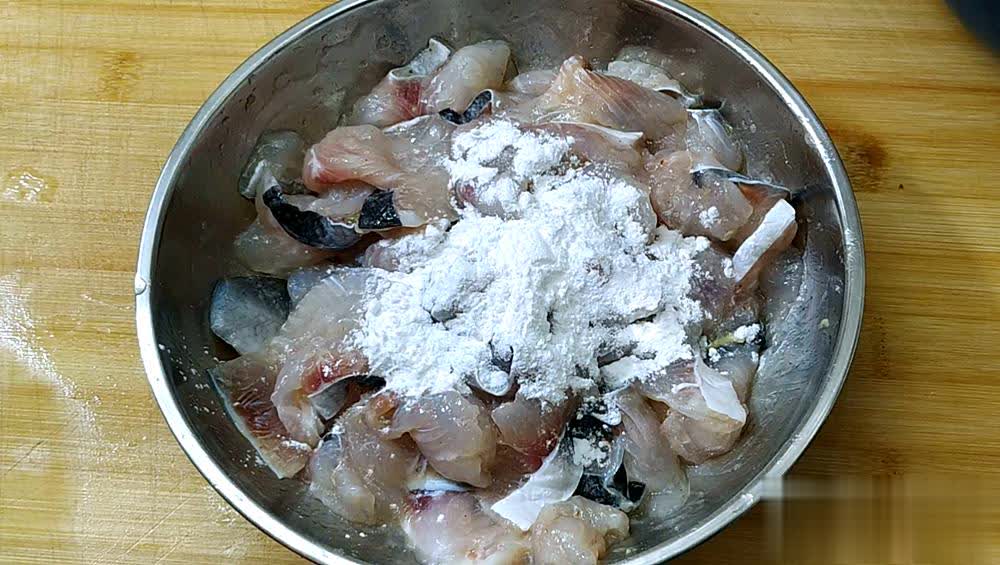 【步骤一】:巴沙鱼一般都是冰冻的,我们把它解冻,清洗干净后,将鱼斜刀切成片,可以稍微大一点,因为巴沙鱼肉质比较嫩,稍不注意就会碎的。