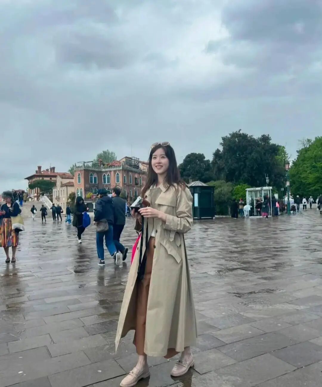 路人镜头下的她,皮肤白皙透亮,身材纤瘦高挑,165cm的身高,就算穿最基础的衣服也显得特别有质感。
