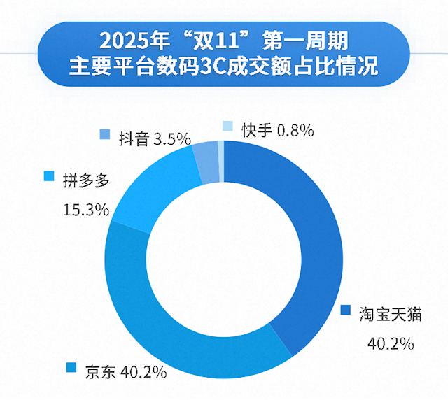 据易观双11观察报告,双11主要平台成交额,天猫3C数码占比达42%,全网第一。