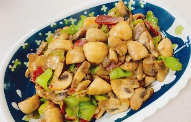 8. 装盘: 将炒好的尖椒炒口蘑装盘,即可享用。