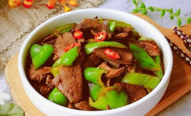 8. 装盘: 将尖椒炒猪肝装入盘中,可以撒上一些香菜末或者葱花点缀,增加美观。