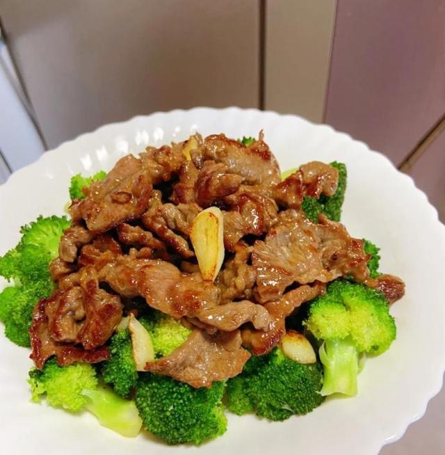 2.另起锅,放少许油,爆香蒜片,倒入牛肉翻炒至熟,再将炒好的西兰花倒入,混合翻炒均匀即可。