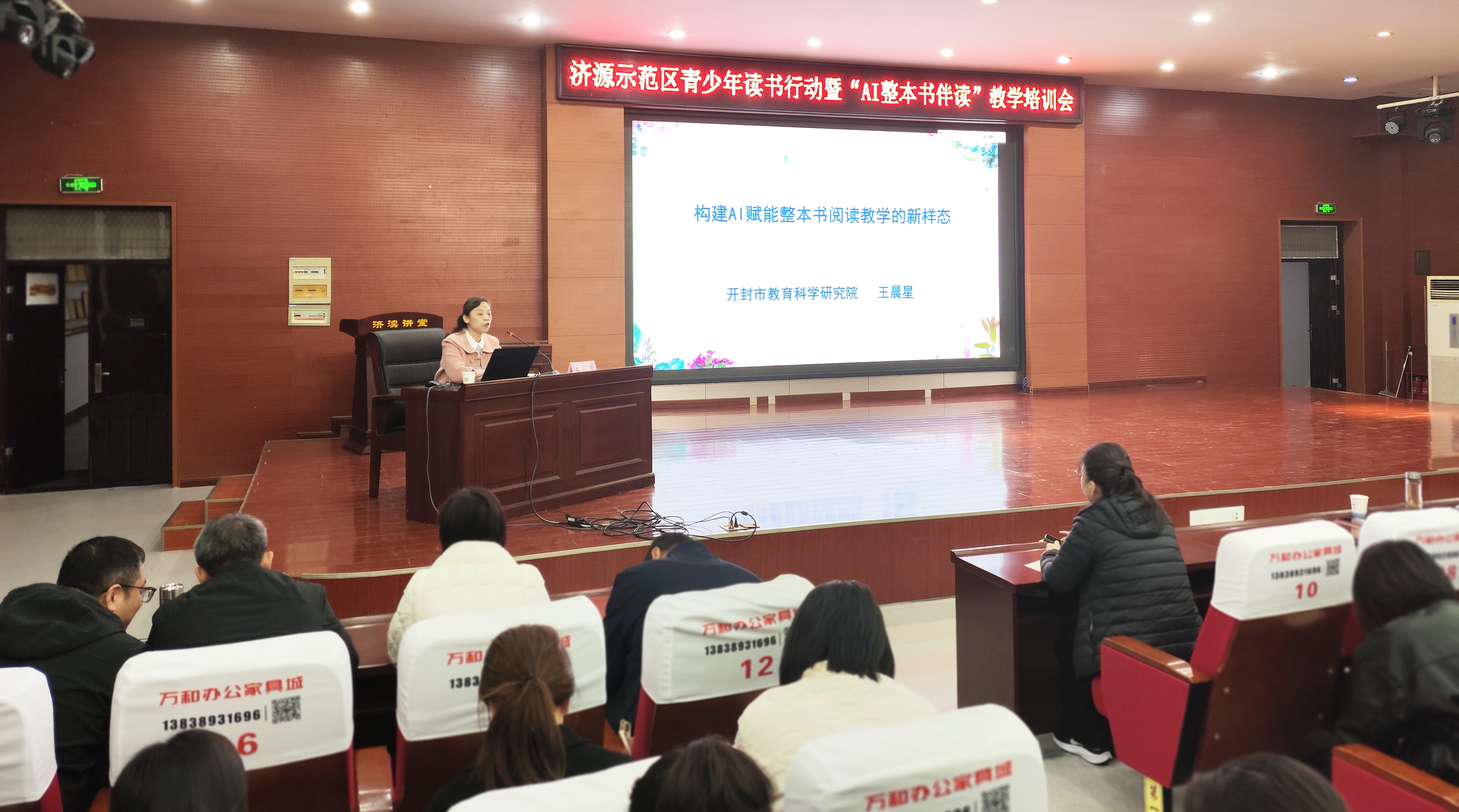 11月10日,济源示范区青少年读书行动暨“AI整本书伴读”教学培训会在济源市济渎路学校报告厅举行。现场座无虚席,空气中弥漫着浓厚的学习交流氛围,与会者共同迎接这场聚焦AI与阅读教学融合的教育盛会。领导致辞