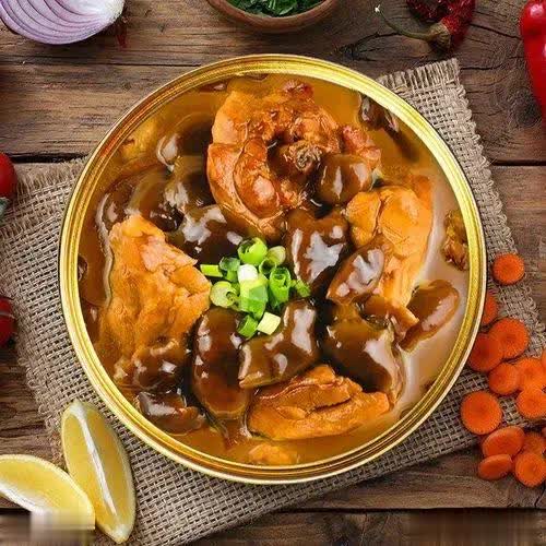 1、精选整只农家土猪脚,经高压锅压制两分钟,然后用宜州米醋和食盐抹匀,稍微晾一下皮,入油锅中小火炸至色泽金黄,即可捞出斩件待用。
