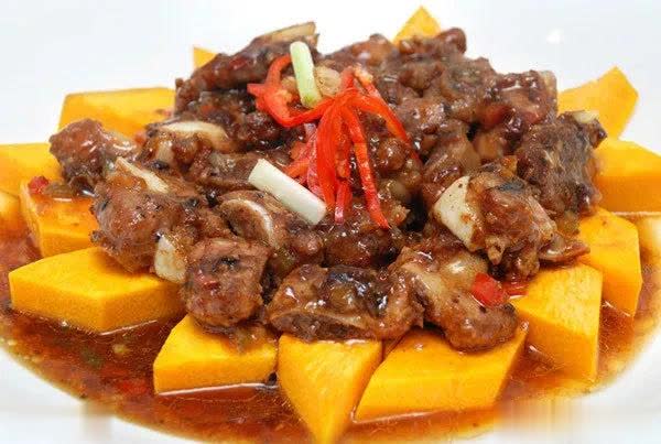猪肋排300克,南瓜500克,鱼香酱2汤匙,生抽1汤匙,蚝油1汤匙,生粉1茶匙,料酒1汤匙,姜少许,蒜少许,葱白少许,辣椒适量