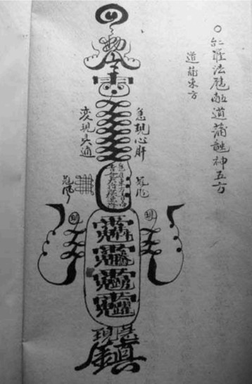 另外,地方的仪式里也杂糅中国佛教、道教的因素。在安裔村,盛行源自宋代的雷法传统元素。“以道教雷神为对象,旨在召龙致雨的一整套仪式融合了符箓、手诀、咒语等技法。”(Joshua Capitanio, “Dragon Kings and Thunder Gods: Rainmaking, Magic, and Ritual in Medieval Chinese Religion,” PhD thesis, University of Pennsylvania, 2008)村民所用的五色龙神符咒,却是由越南李朝高僧觉海和尚教授给村民的,青赤白黑黄五色分别对应东南西北中方位(150页)符咒画法和所附汉字与中国雷法符箓的相似性,佐证了中越祈雨传统的渊源。