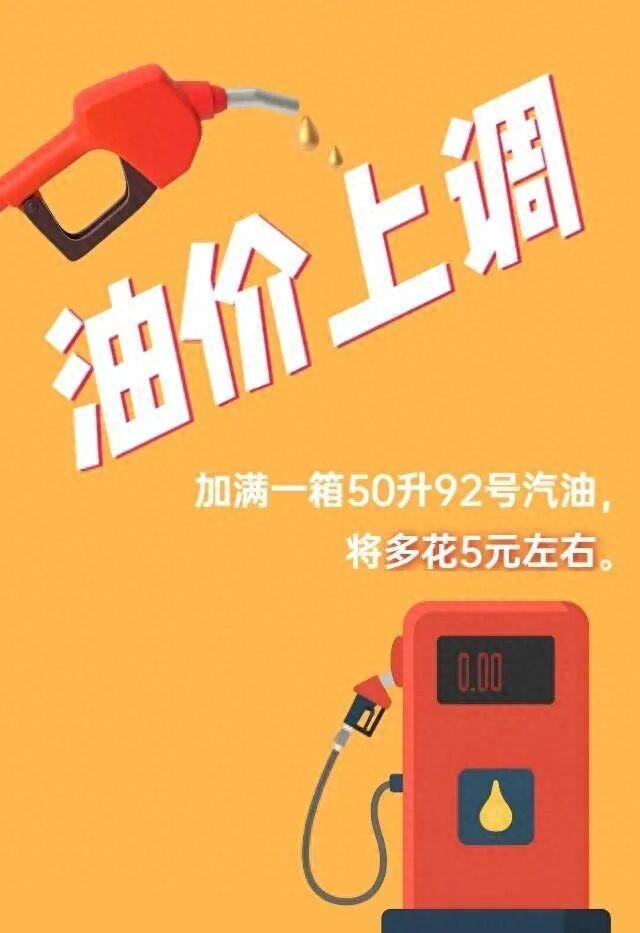 近期国际市场油价波动运行,根据11月10日的前10个工作日平均价格与10月27日的前10个工作日平均价格对比情况,按照现行成品油价格机制,自11月10日24时起,国内汽、柴油价格(标准品,下同)每吨分别上涨125元和120元。按此计算,加满一箱50升的92号汽油,将多花5元左右。