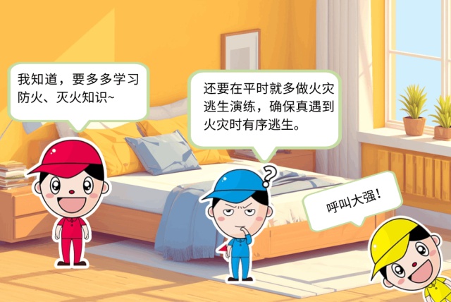 如果有条件,要学会使用逃生用的梯子或安全绳,要知道它们平时放在哪里。