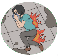 反复练习自己身体衣物着火时的动作要领一“停下,趴下,打滚”。要记住,跑动只会使火焰蔓延得更加迅速。