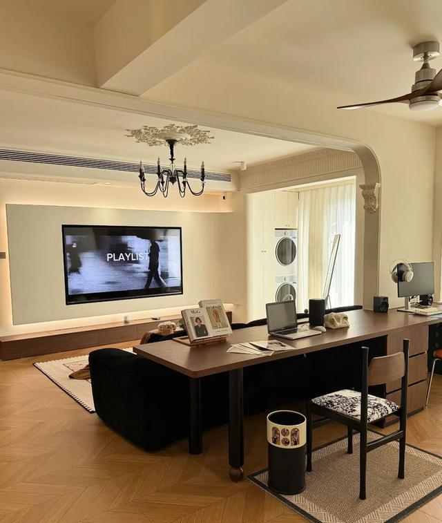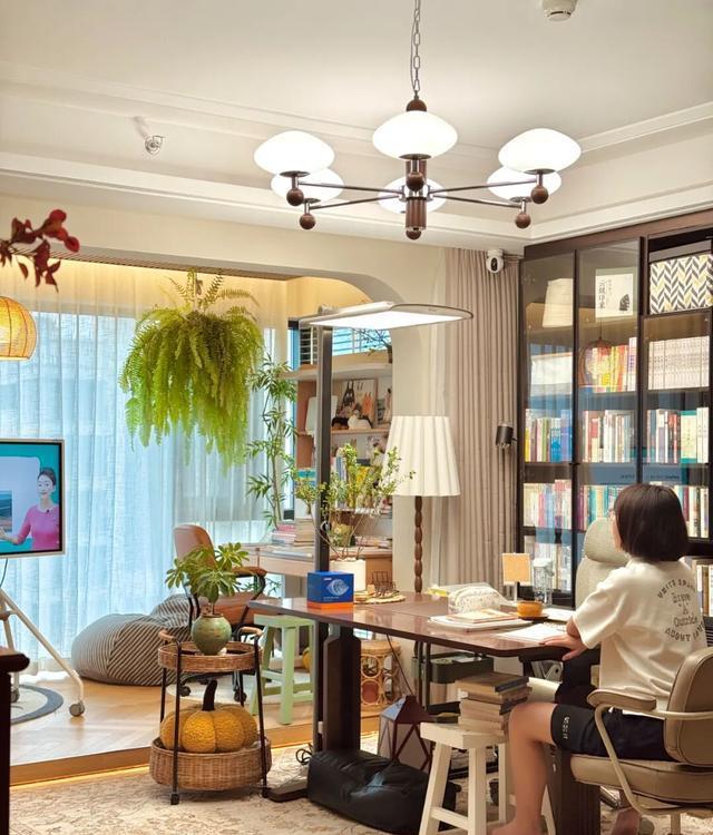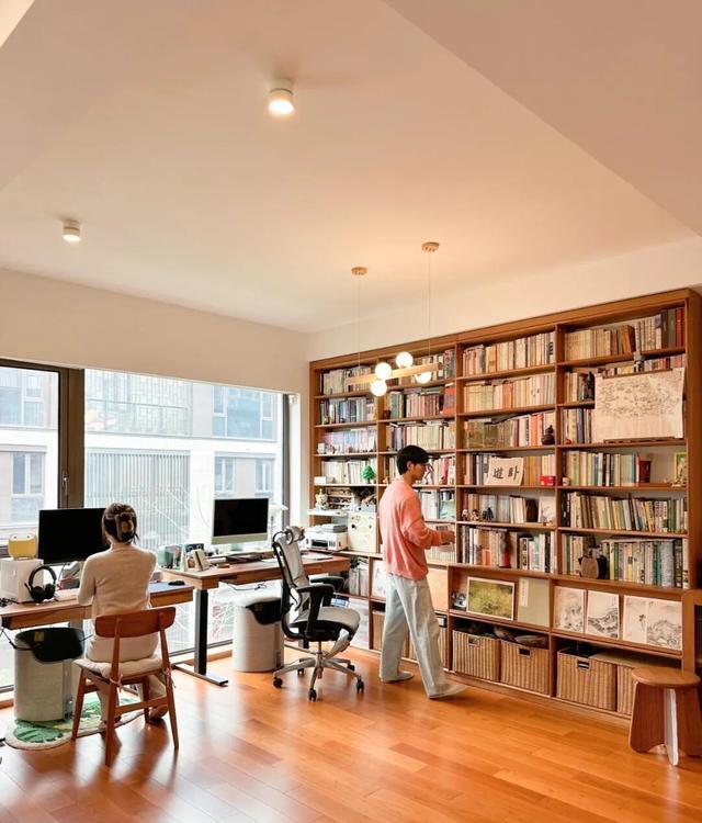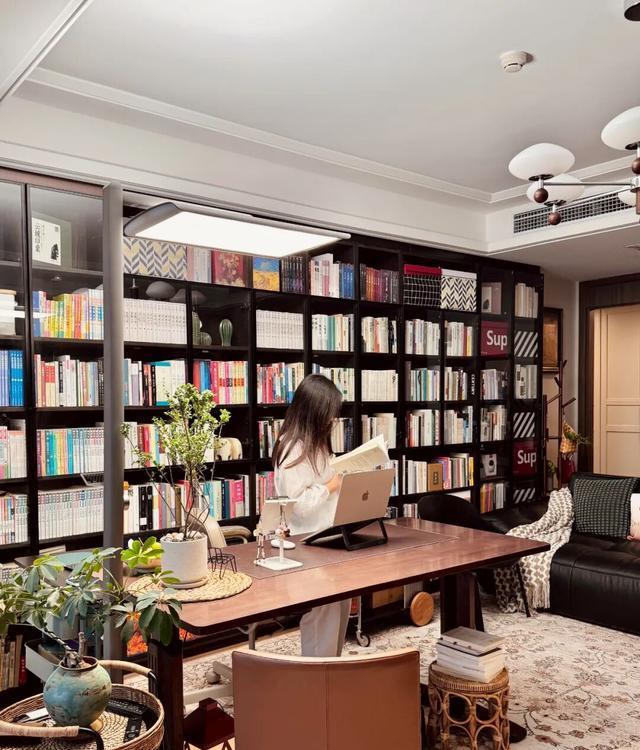 什么客厅电视必须C位的,都是老一辈的执念。现在的我们,更需要一个能静心读书、专注工作、陪家人聊天的地方。满墙的书不一定要读完,但它们默默提醒你:生活除了柴米油盐,还有更广阔的世界。