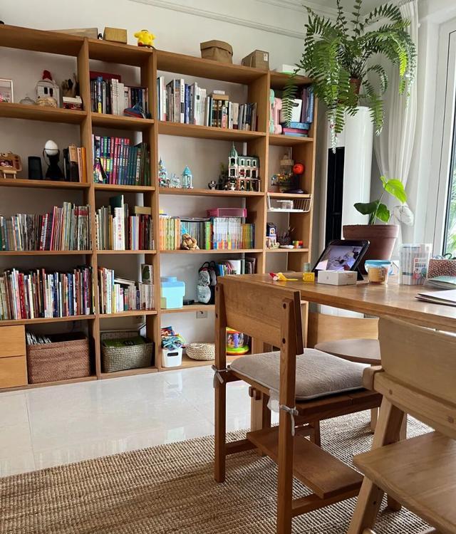 网友@大千和小橙子 家也是一样,她说当初顶着全家人的反对,设计成去客厅化的书房,整个家的氛围感绝了,培养娃的阅读习惯都方便多了。