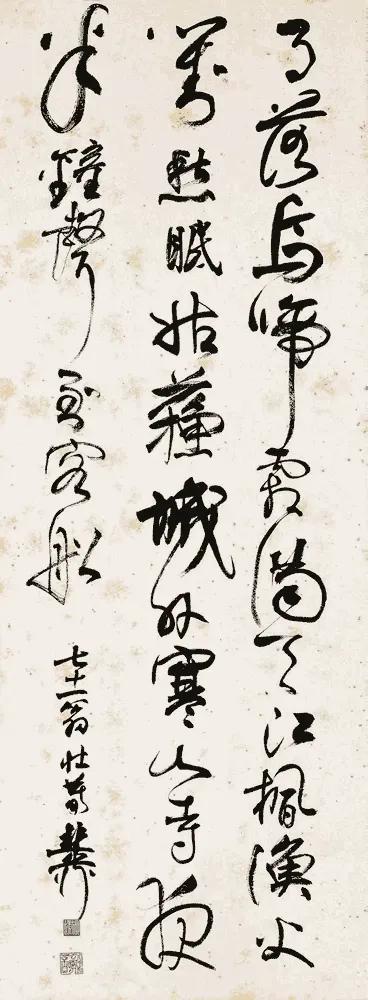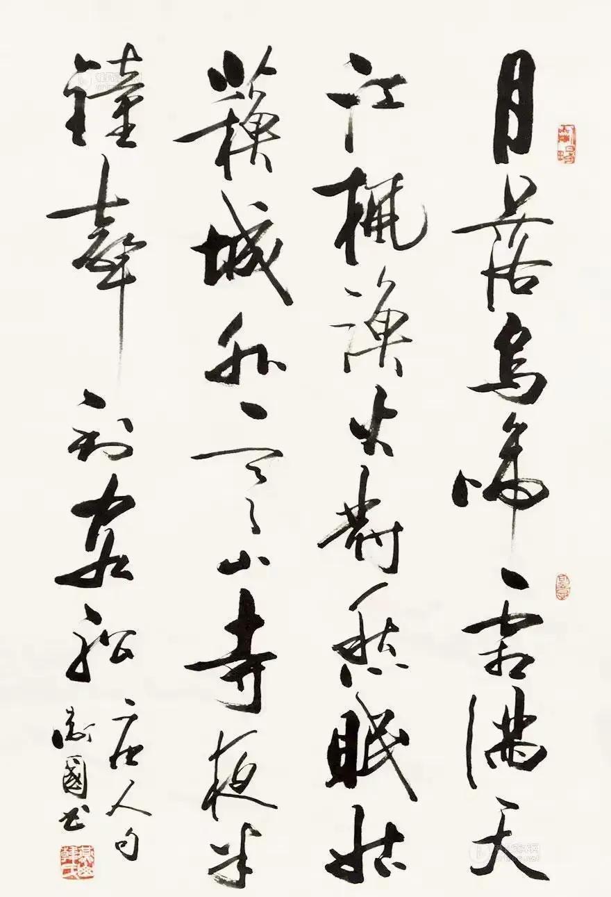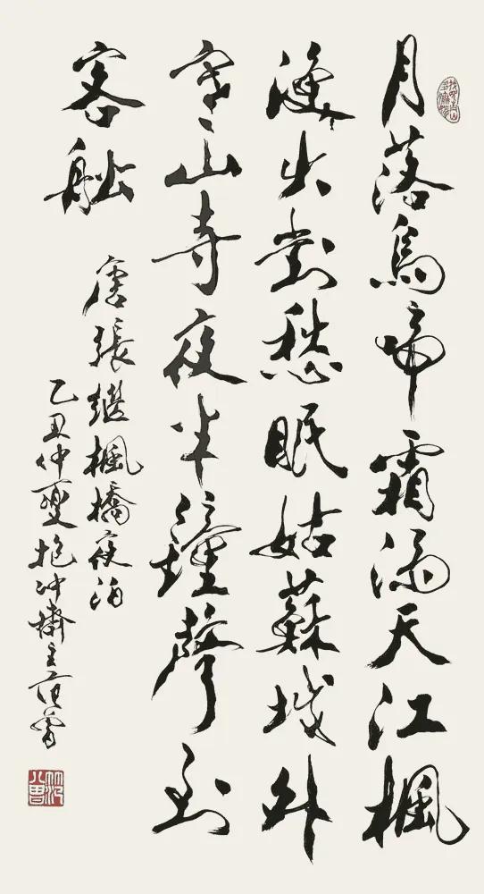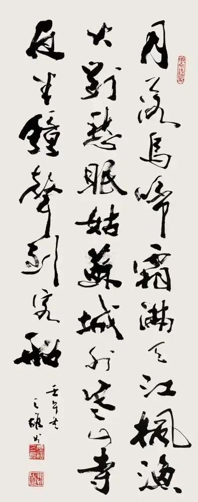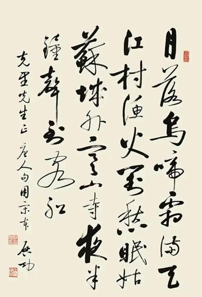 不同书家写《枫桥夜泊》,墨色里尽是不同风骨。 康熙笔锋端正肃穆,藏着帝王的规整气度,字里行间少了诗中愁绪; 启功清隽瘦硬,如寒江疏月,与“夜半钟声”的清寂最是贴合;沈鹏狂放洒脱,笔画跌宕间似能听见