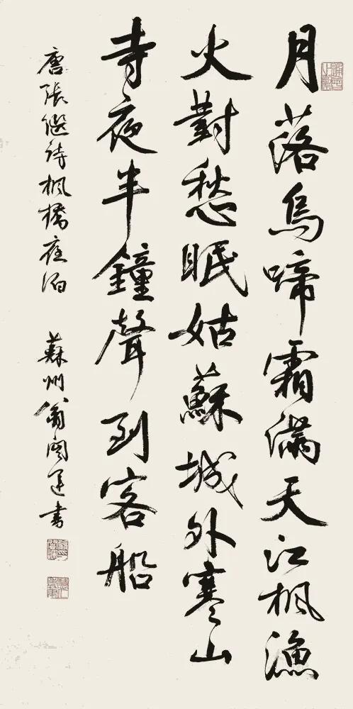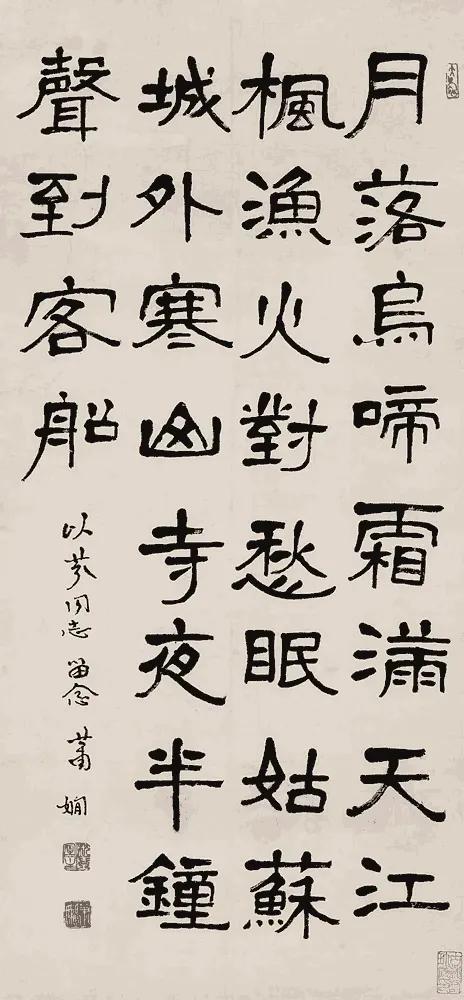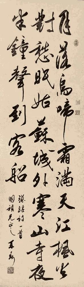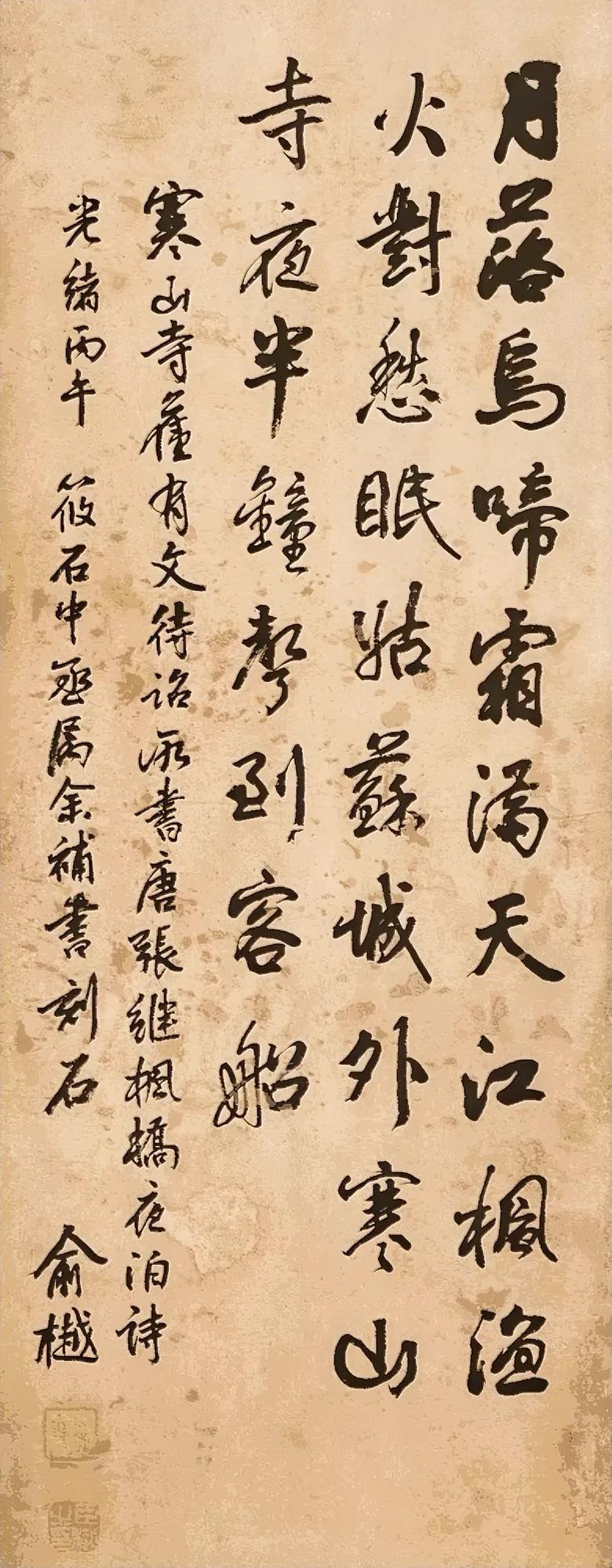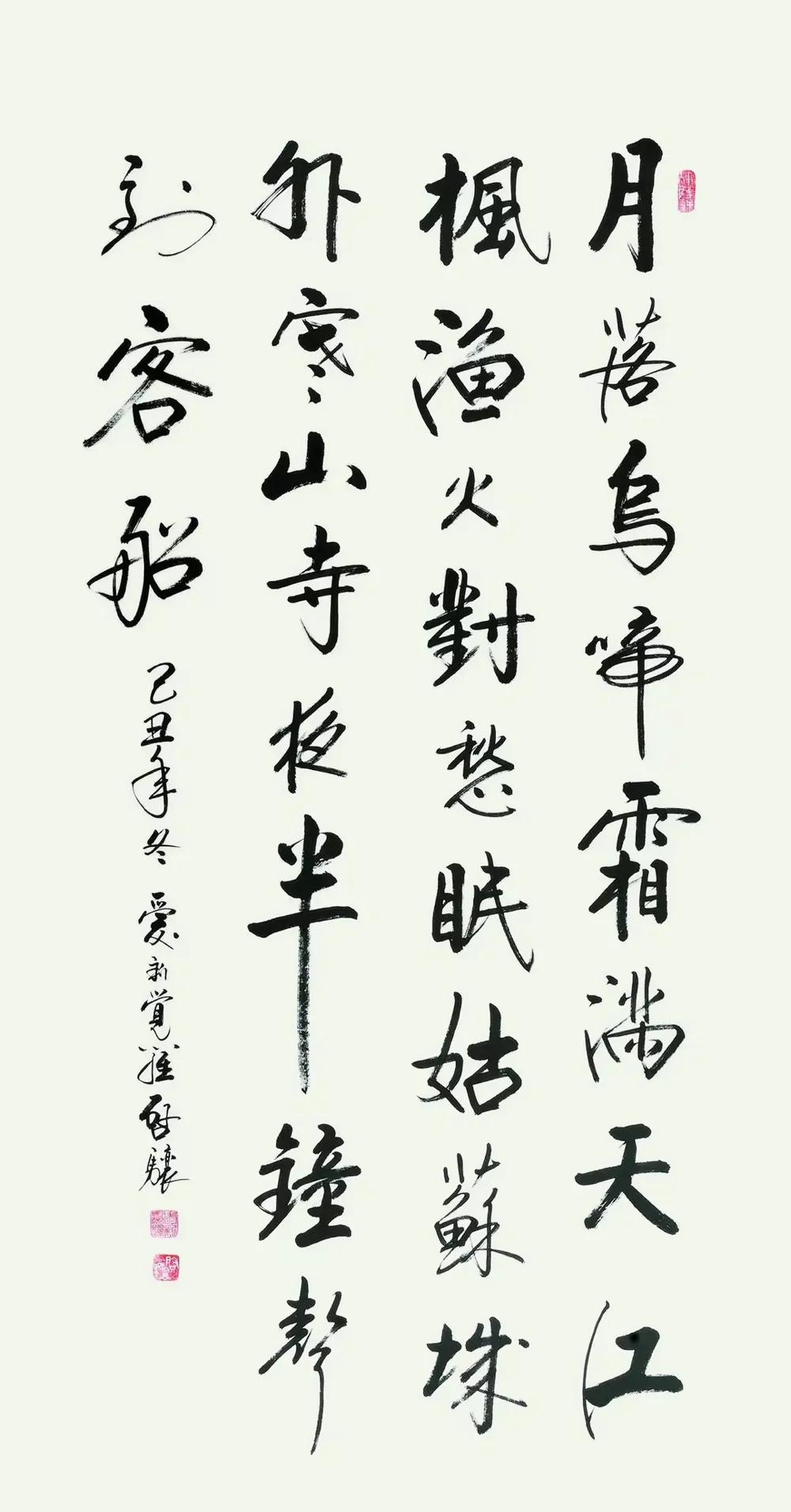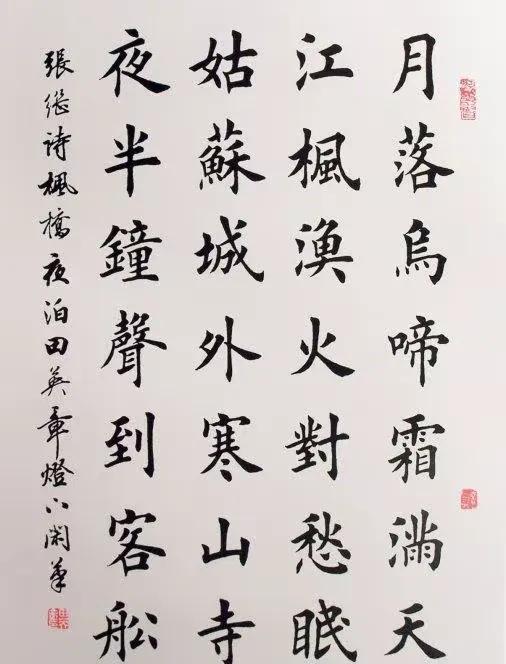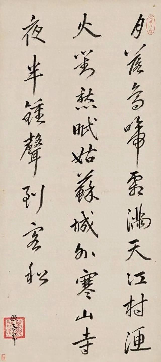我最钟意启功笔下的版本,他的字不疾不徐,瘦劲中藏着温润,既写出了“江枫渔火”的淡远,又暗合“夜半钟声”的空灵,墨色起落间。