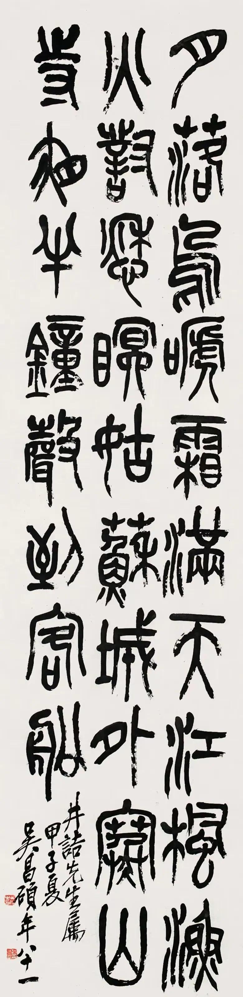 舒同“舒体”圆润醇厚,少了诗的清寒;吴昌硕篆意入书,古拙雄浑,与夜泊的清幽气质稍远。