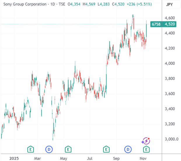 (索尼集团日线图,来源:TradingView)