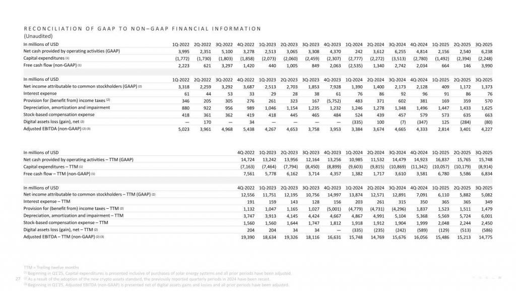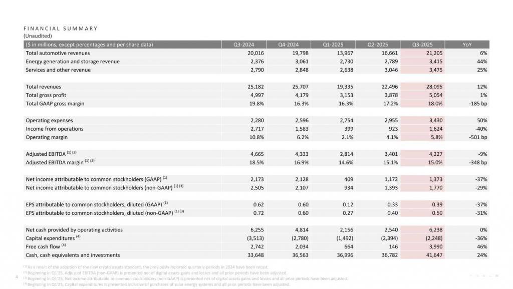 ▲特斯拉 2025 年三季度财务表现