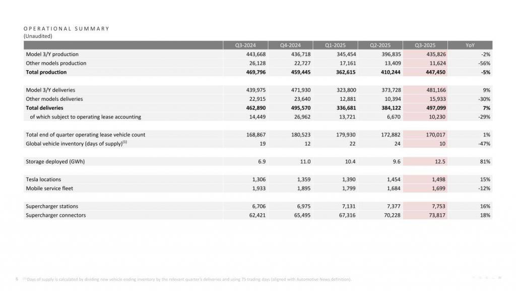 ▲特斯拉 2025 年三季度汽车销量数据