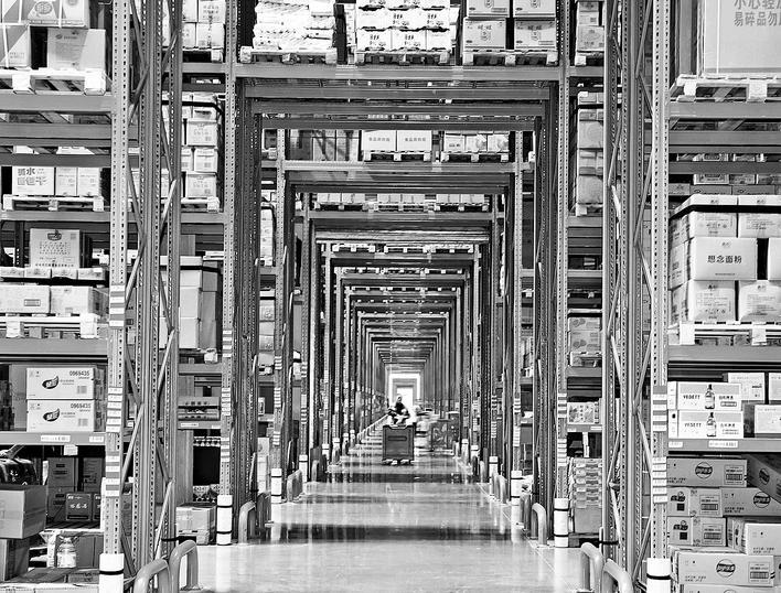 11月11日,在河南省南阳市万德隆大型综合产业园物流配送中心,工人在仓库运送商品。 (新华社发 高嵩 摄)