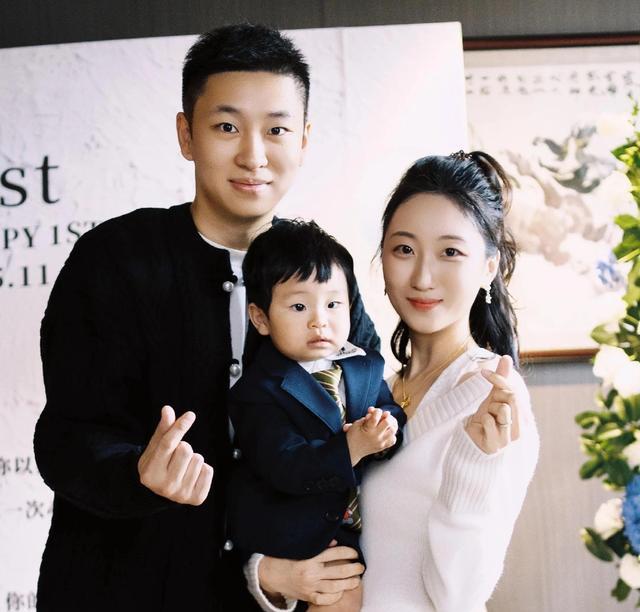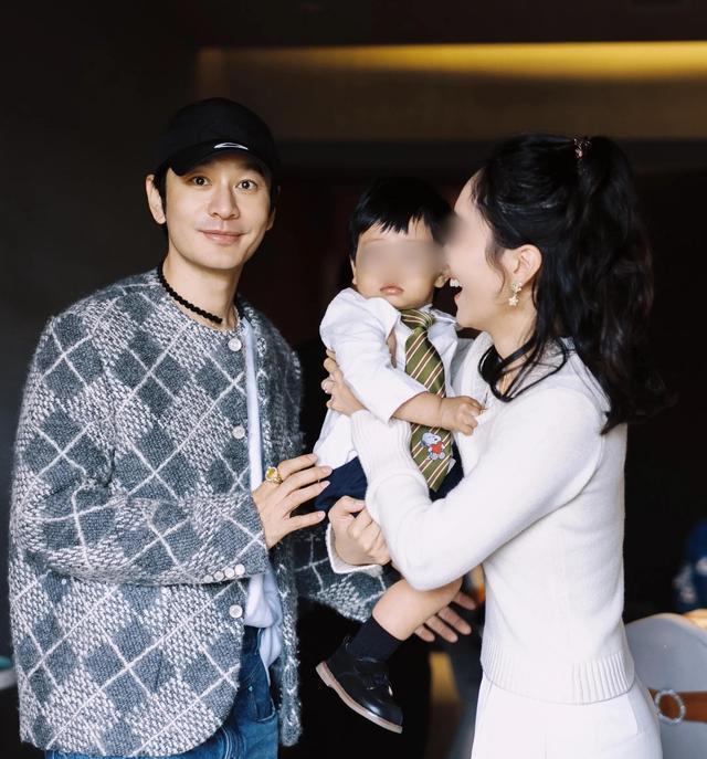 下图是小寿星的父母,男子应该是黄晓明的表弟,留着短发很精神,面目清秀,不输黄晓明;女子长着一张鹅蛋脸,气质清新脱俗。