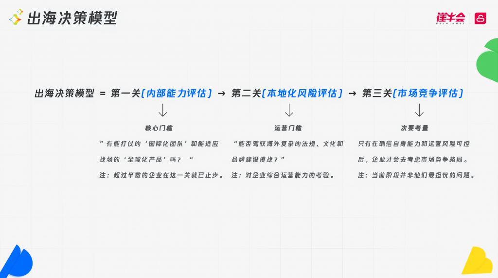 出海并非盲目扩张,厂商们正在形成一套严格的自审决策逻辑。他们必须经过“三问”的门槛。