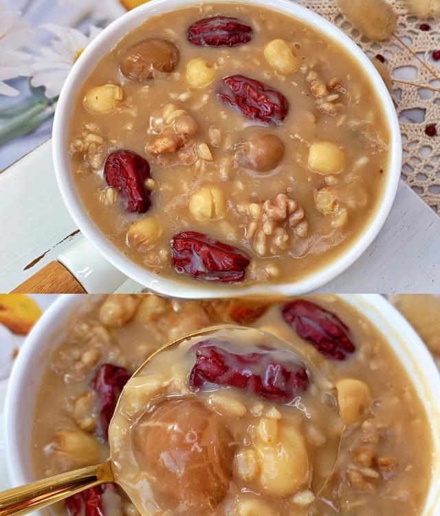 今天给大家分享的这款我家每周必喝三次的【红枣桂圆核桃粥】,就是这么一款神仙早餐,做法简单,但效果杠杠的!