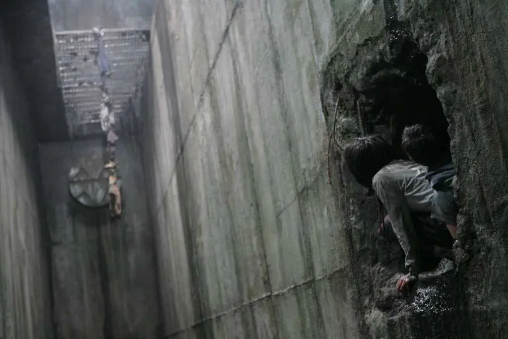 这种个人经验被导演转化为一种未来寓言。《遗鳍》虽设定在“近未来”,但其隐喻的社会结构与现实韩国密不可分。影片中通过欧米伽的出现来象征劳动群体、少数族裔和底层阶层被迫居住在城市边缘的景象,映射了现实中的首尔的高度中心化与其他城市资源的不平衡结构。资本主义的发展加剧了城乡与阶层间的某种差异。中心城区的人享受繁华与便利,而外围群体则承受环境恶化与社会歧视。这种近未来的统一社会,实则是一面放大的镜子,折射出现代化与城市化过程中已经存在的矛盾与困境。
