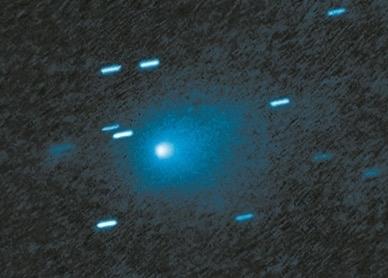 英国天文学家迈克尔•布赫纳和弗兰克•尼布林拍摄的最新图像显示,该物体“长出了”一条62万英里(近100万公里)、指向太阳的“反尾”,同时向外喷射一条延伸了186万英里(约300万公里)长的轨迹流束。
