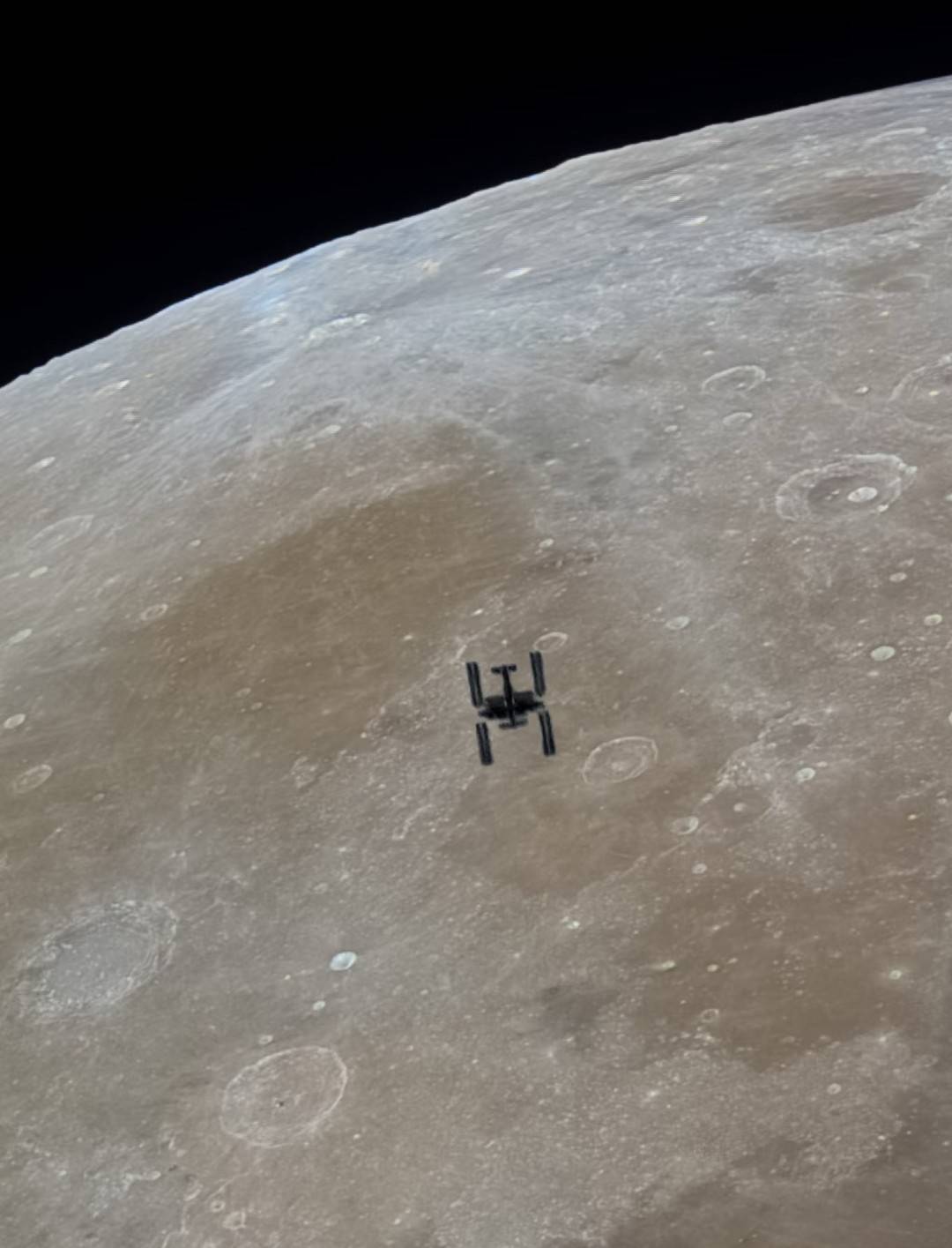 照片中,距离地球约400公里的中国空间站结构清晰可辨,其背后的月亮光洁如银盘,纹路毕现,整个画面宛如科幻与现实交汇的壮美图景,让不少网友直呼震撼。