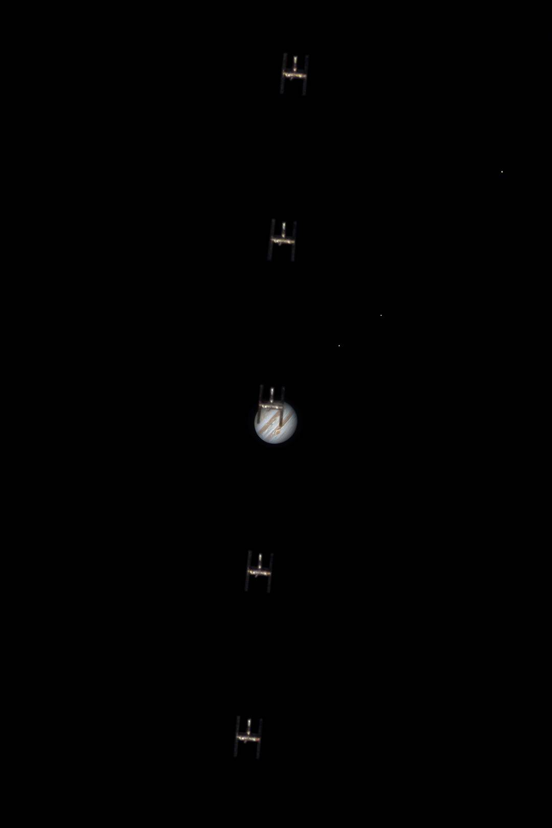 中国空间站是沈思齐作品里的常客,除了多次拍摄到其凌月、凌日,去年9月,他还成功拍摄到了中国空间站凌木星,成为了公开信息中全球首位精准捕捉到该画面的天文爱好者。他谈到,“每次拍到中国空间站,都有一种特别的自豪感,能在地面看清它的结构,仿佛与它建立了一种的特殊联结。”