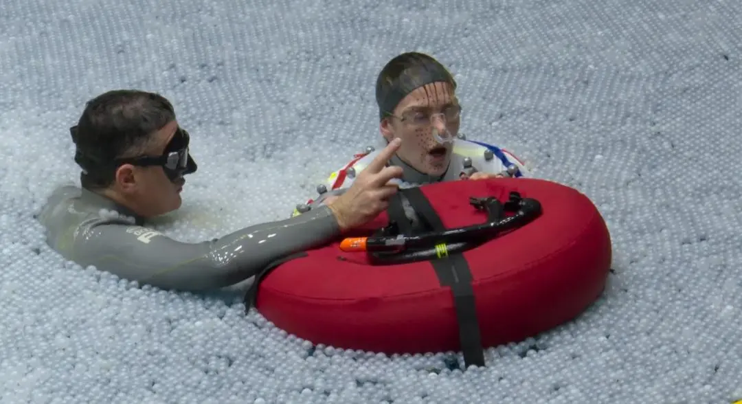 水的密度是空气的800倍,这种巨大的阻力会深刻影响人体的每一个动作——从发力方式、动作速率到身体的漂浮与减速。这些基于真实物理规则的细节,是演员在空气中无论如何也“演”不出来的。