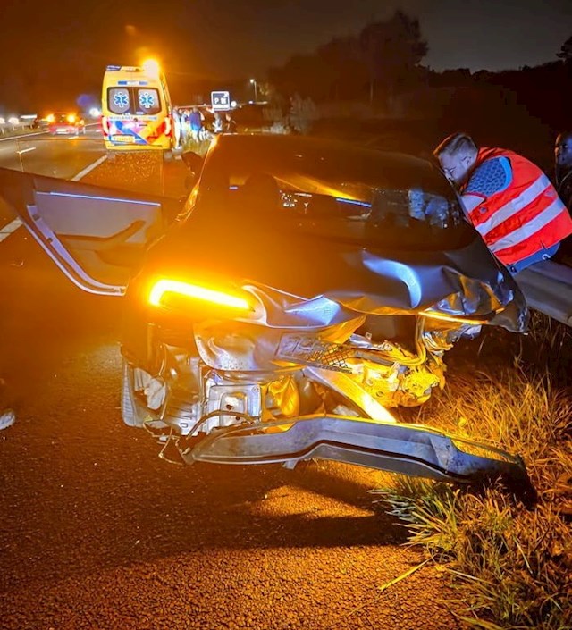 从现场照片看,这辆Model 3右后轮丢失,后方塌陷严重,甚至防撞梁都裸露了出来,但整体框架依旧完整,尤其是乘员舱部分,且车门可以正常打开。
