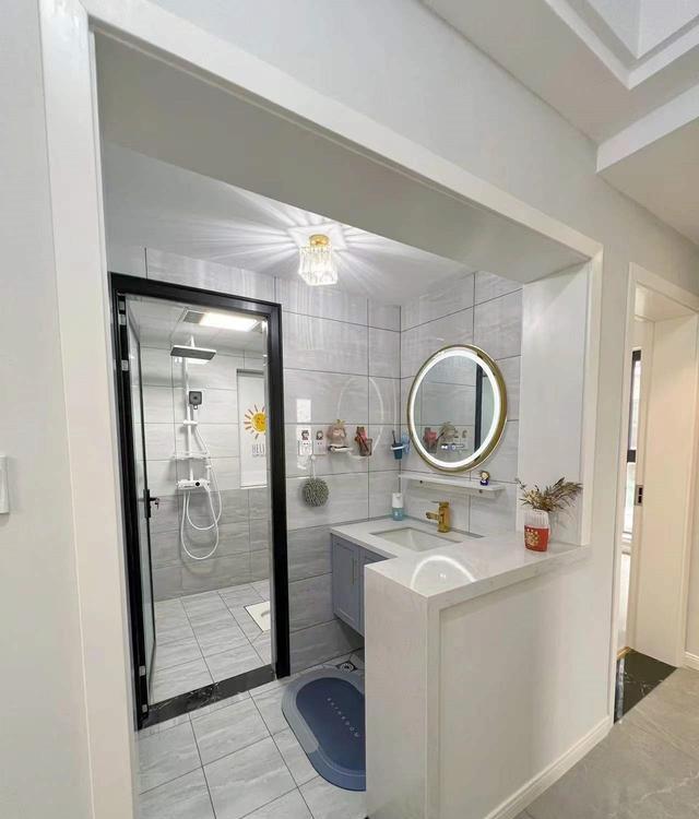 洗漱区与过道之间的半墙既起到了隔断的作用,又在一定程度上保持了通透感,使整个卫生间显得更加明亮和宽敞。