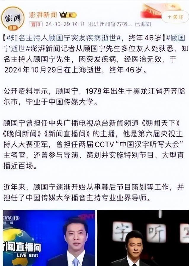 央视帅主持顾国宁确诊肺癌晚期,却仅15天就离世,太突然